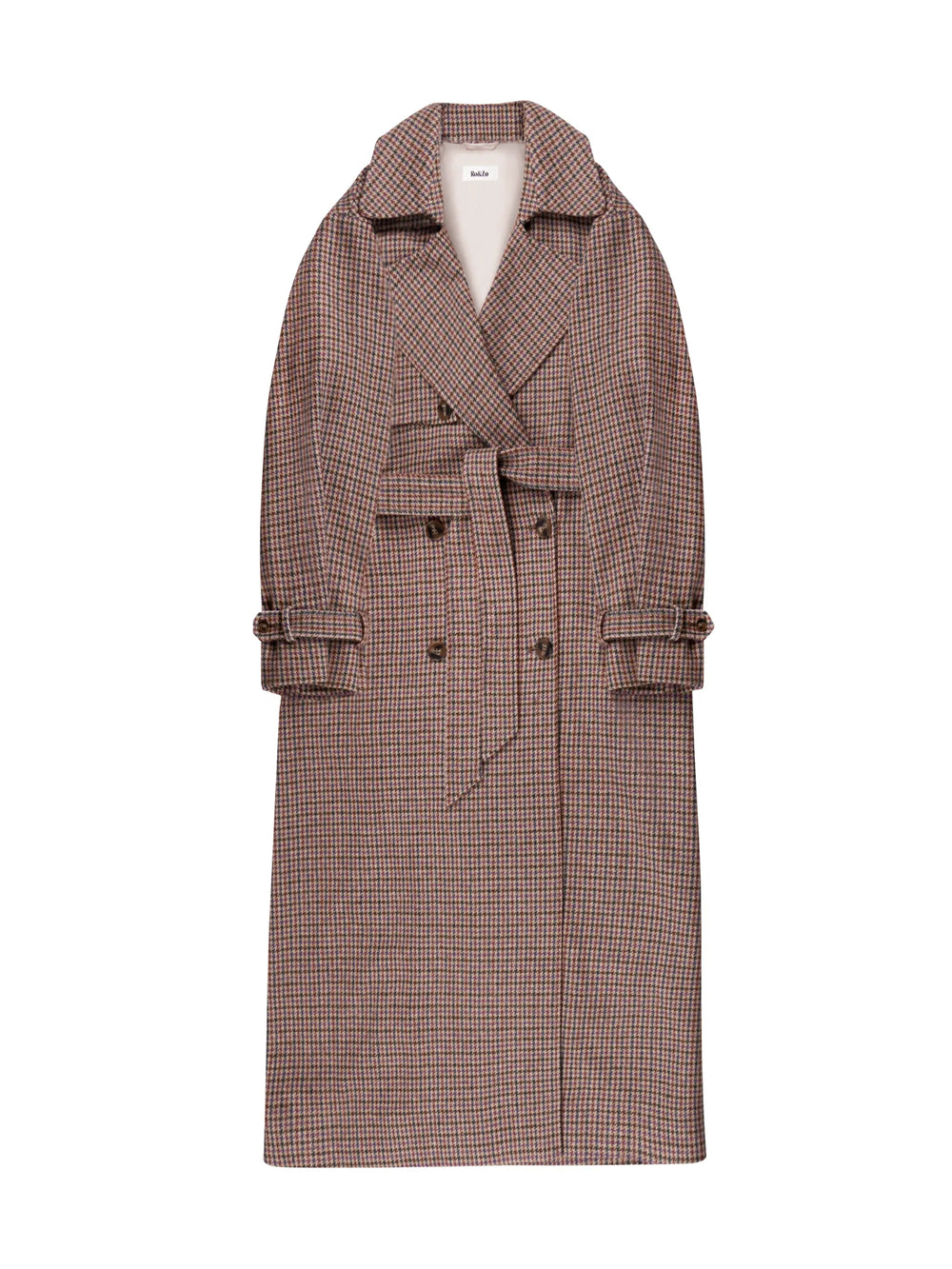 Featuring a timeless houndstooth check and trench-inspired detailing, this coat is an investment piece you’ll reach for year after year. It is made from a warm wool blend, fully lined and designed for a slightly oversized fit. The midi length looks great with wide-leg jeans and maxi dresses alike – cinch the belt to define your silhouette.