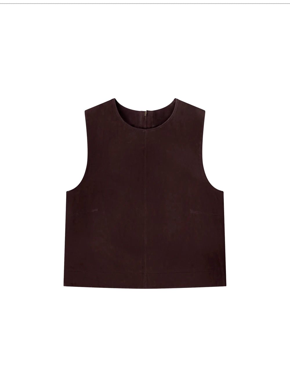 Elevate your wardrobe with this Suede Shell Top, crafted from 100% luxurious goat suede for a soft, sumptuous touch. The sleek, minimalist design features a back zip and full lining, ensuring a flawless fit and effortless comfort. Perfectly paired with the matching Chocolate Suede Wide Leg Trousers, this shell top creates a contemporary co-ord that exudes modern sophistication. Wear it tucked into tailored trousers for a polished office look, or style with jeans and boots for relaxed elegance.