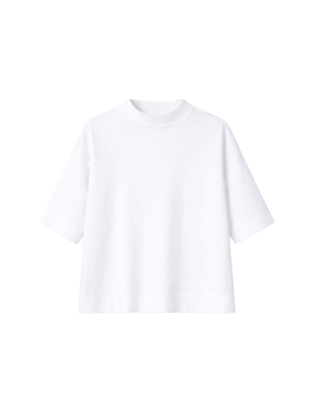 With a chic mock neck and half-length sleeves, this cotton top is an elegant alternative to a classic white T-shirt, and has all the comfort and ease of the style staple. Throw it on with high-waist jeans and accessorise with chunky gold jewellery.
