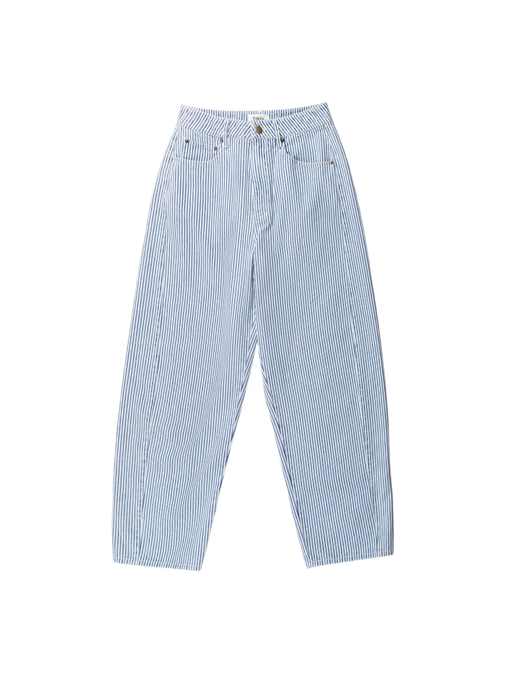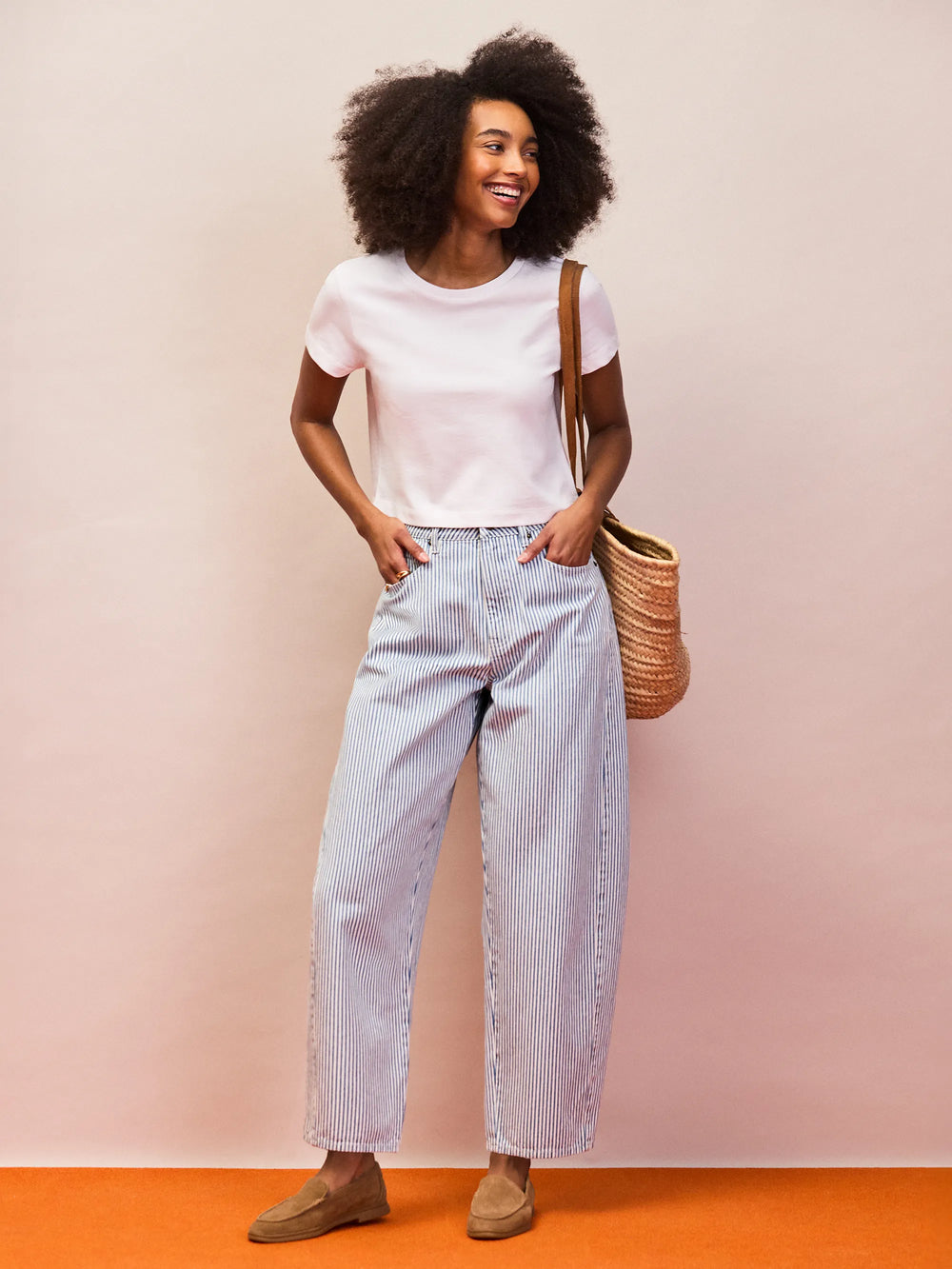 Freshen up your denim collection for spring with our Blue Stripe Barrel-Leg Jeans. Crafted from pure cotton-denim, they have a mid rise and curved, barrel legs with ankle-grazing hems, as well as front and back pockets. Show off the stripes by teaming them with a simple white tee and loafers.