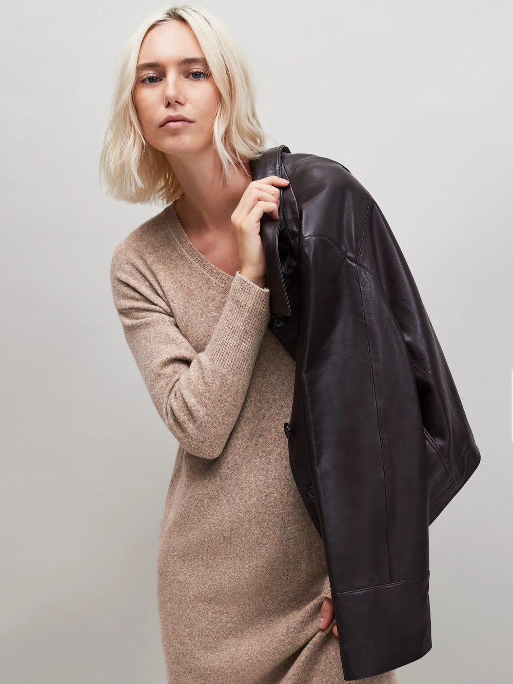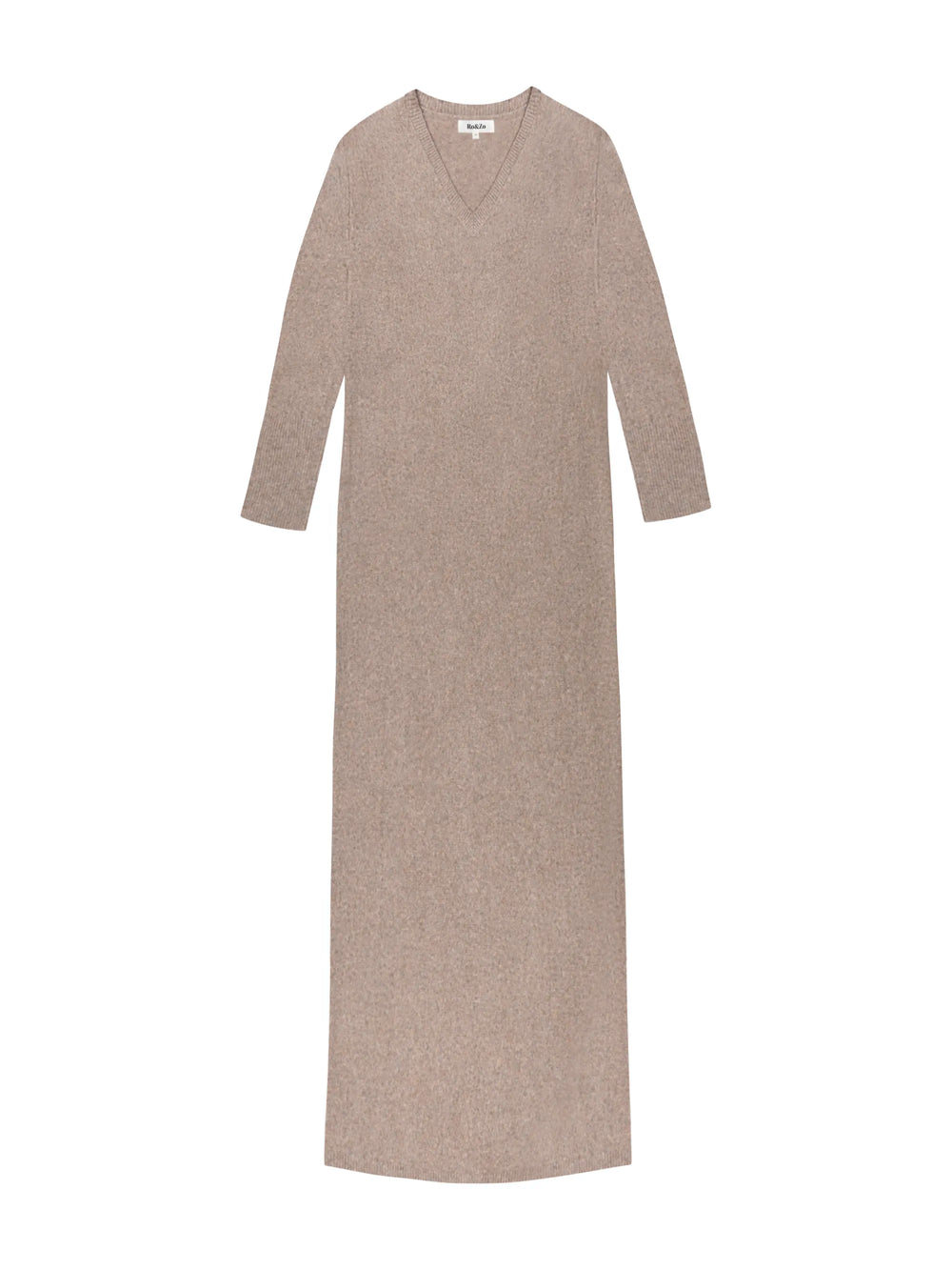 The Oatmeal V-Neck Knit Dress is a soft, effortlessly stylish addition to any transitional wardrobe. Crafted in a flattering regular fit, it features a classic V-neck and subtle back splits for ease of movement. Falling to a midaxi length, this dress combines comfort with refined femininity. Pair with ankle boots for a casual, everyday look, or dress it up with heels and delicate accessories for a polished, modern ensemble. A versatile piece designed for seamless day-to-night styling.