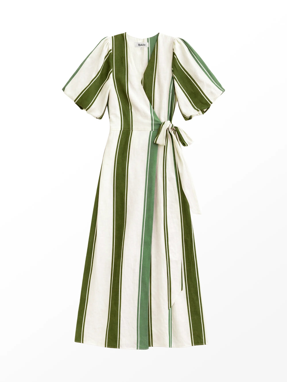 Put a spring in your step on summer days with our new-season wrap dress. It’s crafted from a lightweight linen blend that’s printed with striking green stripes and cut to a midi length. We love the gathered sleeves and tie fastening. Just add flat sandals and a raffia tote. This dress is part of our petite collection, designed for those 5'3" and under.
