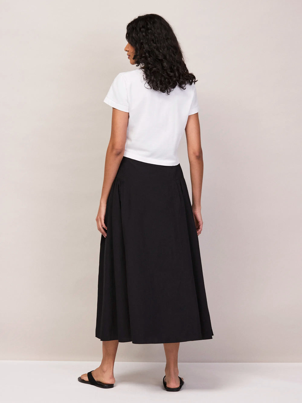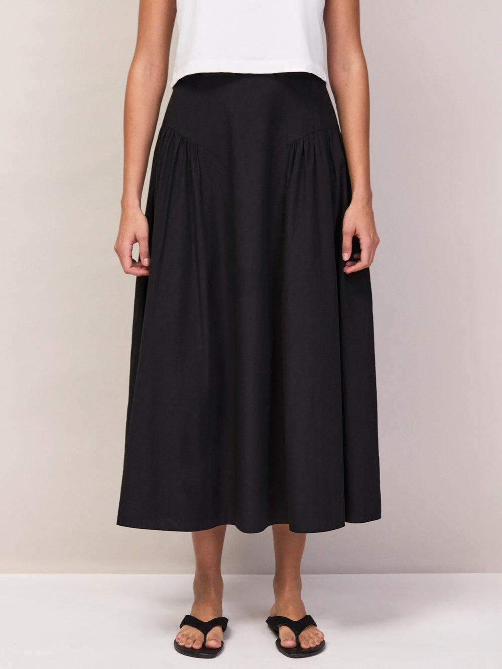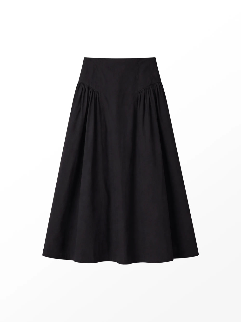 In classic black, this cotton skirt offers an easy, versatile feel. Sitting neatly at the waist, it falls to a midi length with soft gathering for subtle movement. Finished with side pockets and a concealed zip, it’s a go-to piece that works effortlessly from day to evening. This skirt is part of our petite collection, designed for those 5'3" and under.