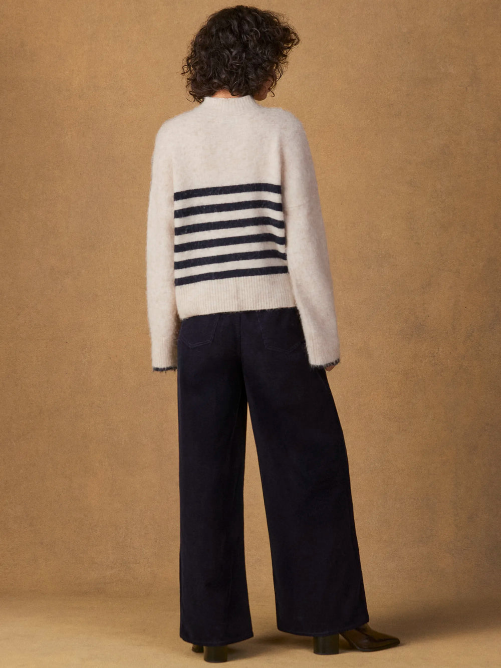 Ivory And Navy Stripe Fluffy Jumper With Alpaca