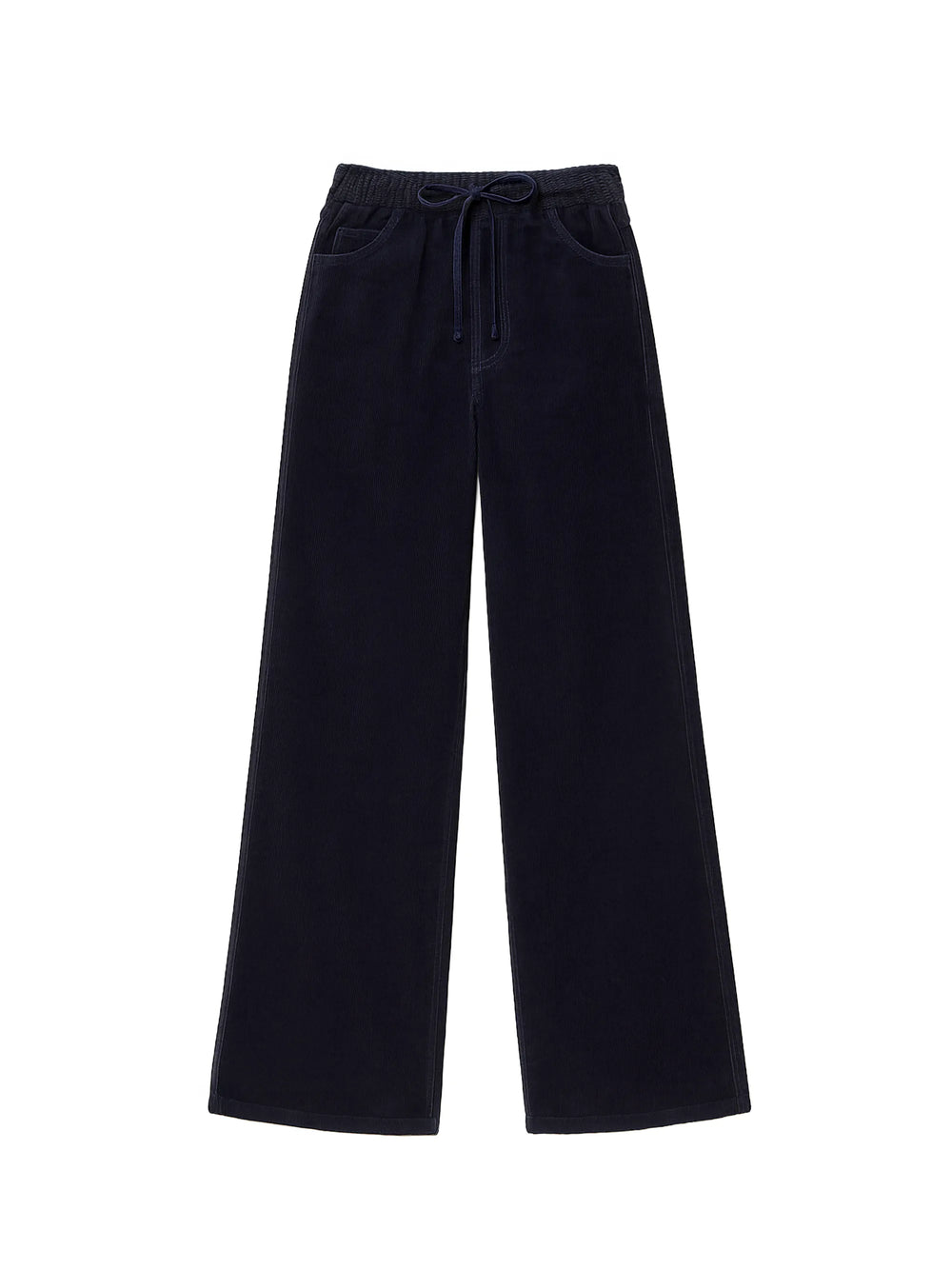 Petite Navy Cord Drawstring Wide Leg Trousers