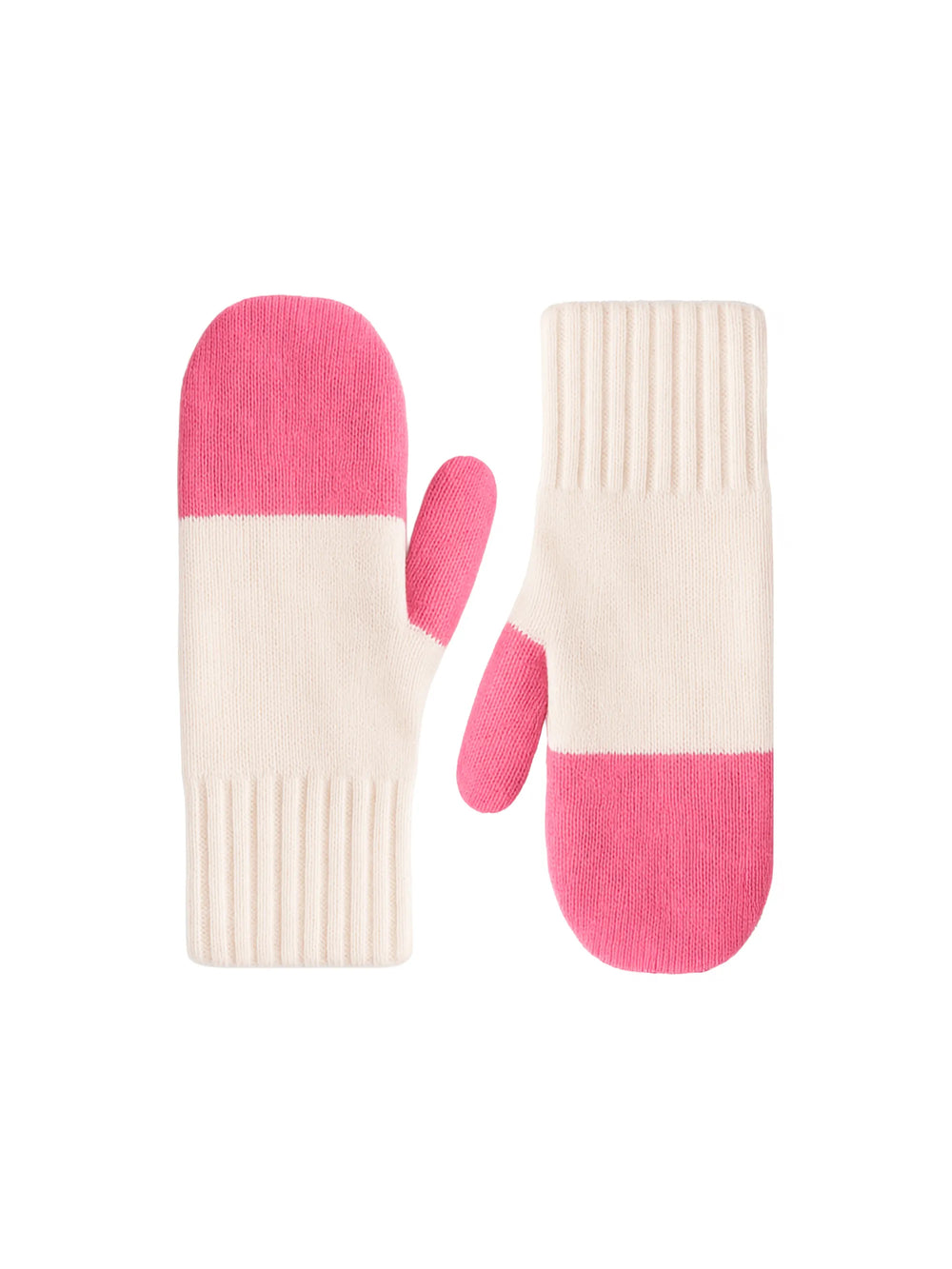 A cosy finishing touch for cool-weather days. These knitted mittens balance warmth and style with their soft pink and cream tones, adding a subtle hint of colour to any outfit. Designed for comfort and ease, they bring an easy solution to winter layering. Slip them on with the matching beanie and scarf for a look that feels pulled together yet effortlessly relaxed, the perfect blend.