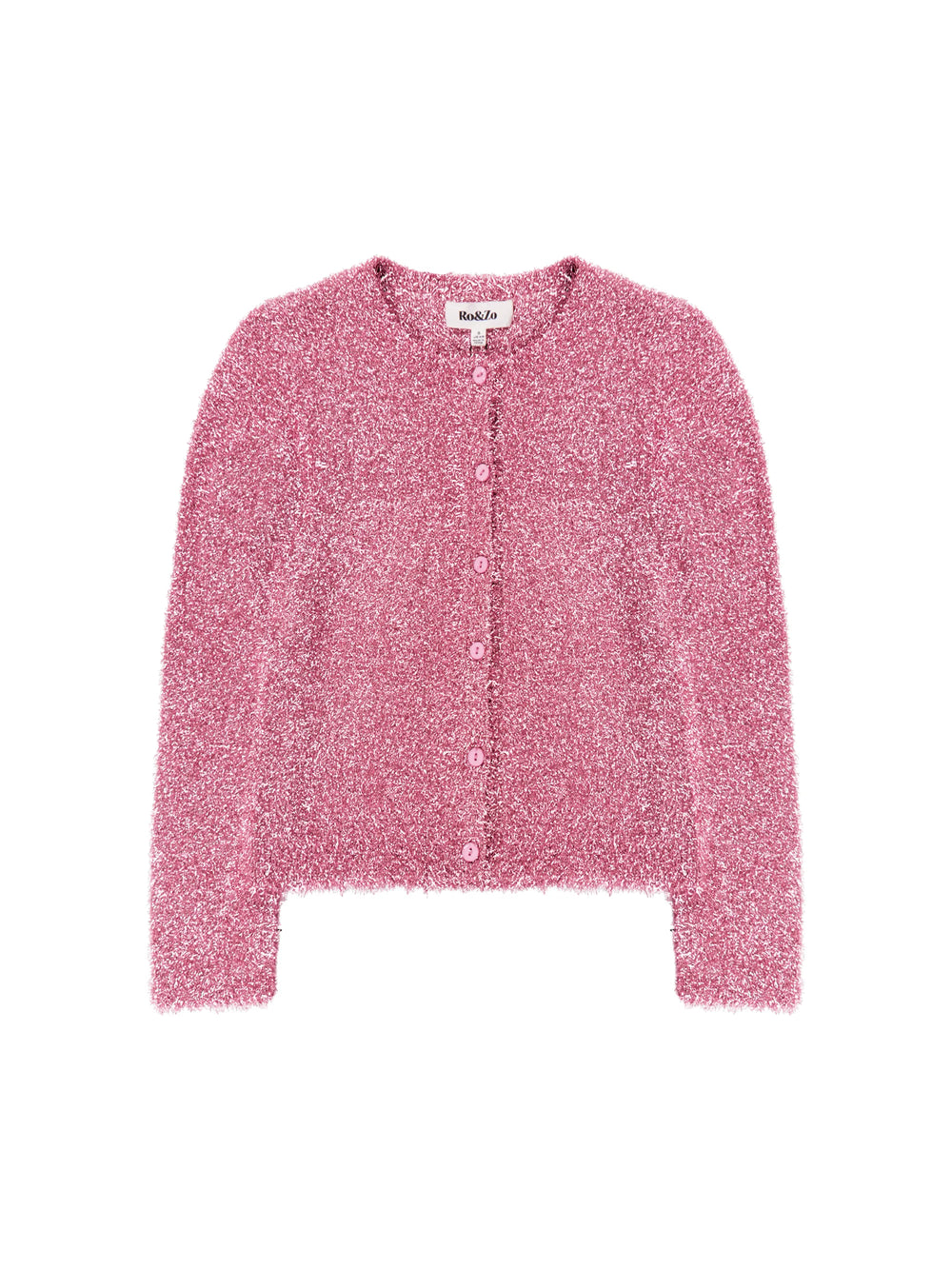 Shimmer with ease in this pink sparkle cardigan, the kind of piece that makes everyday dressing feel just that little bit more special. Woven with metallic yarn, it has a soft textured finish that catches the light in all the right ways. The round neck and button front keep things simple, letting the sparkle do the talking, while the cropped fit adds a comtempory edge. Perfect for layering over jeans or slipping on with a slip dress, it’s the knit you’ll reach for day and night.